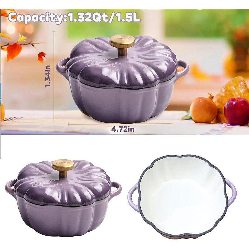 Pumpkin Stockpot, Non-Stick Enameled Pumpkin Dutch Oven with Lid, Dutch Oven Baking Dish with Lid, Pumpkin Casserole with Fall and Thanksgiving Decoration, Perfect for Cooking Evenly and Heating