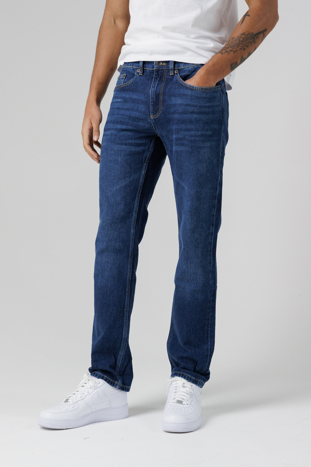 Monkee Genes Mens Dark Blue Organic Cotton Blend Slim Fit Straight Leg Mid-rise Denim Jeans - Size 32W/34L