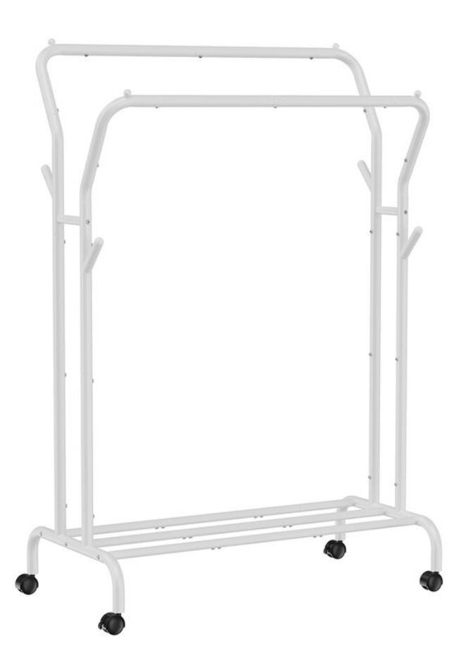 Kleiderständer auf Rollen, 2 Kleiderstange, Garderobenstange, Garderobenständer aus Stahlrohren, bis 100 kg belastbar, 103,5 cm breit, weiß