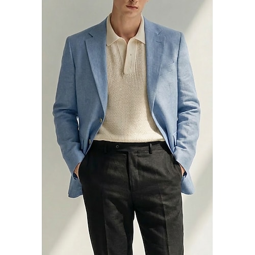 Herren Leichte Jacke Leinenblazer Lässig Täglich Geschäft Elegant Leicht Sommer Frühling Baumwolle POLY Einfarbig Minimalistisch Einreihig Zwei-Knopf Blazer Schwarz Marineblau Himmelblau Schokolade
