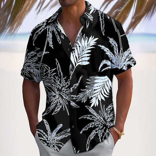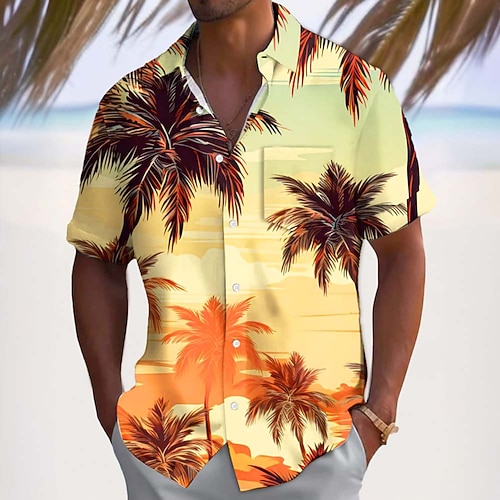 Per uomo Albero di cocco Piante tropicali Camicia hawaiana Camicia con bottoni Camicia Aloha Manica corta Hawaiano Ricorrere Da mare Per eventi Abbigliamento mare Estate Primavera Collo ripiegabile