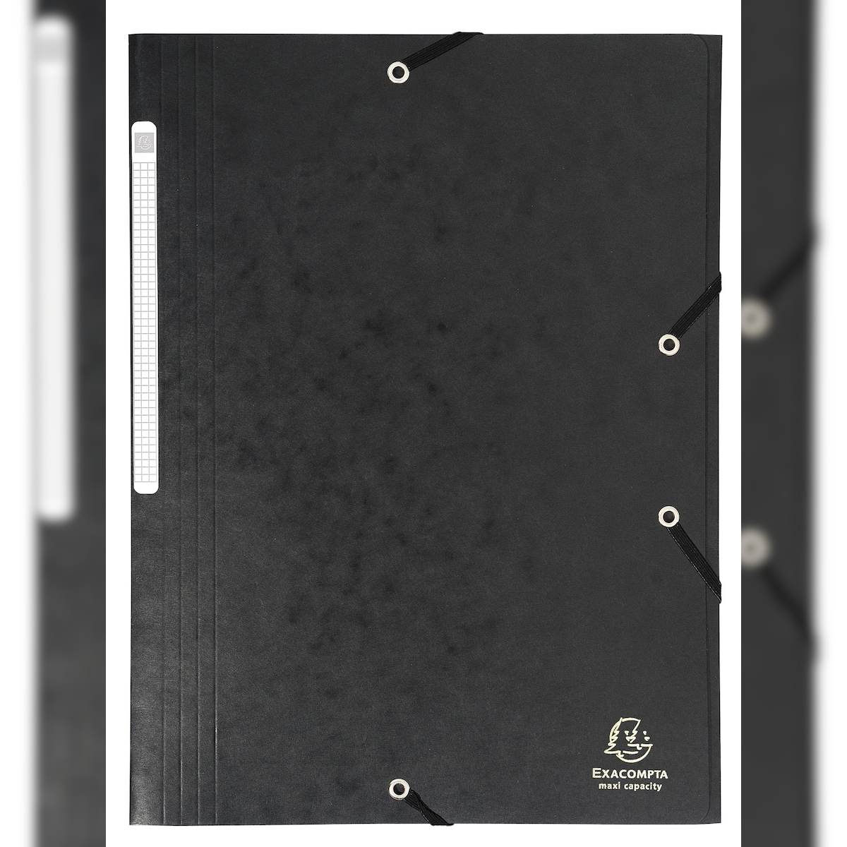 Exacompta 17116H 25x Sammelmappe mit Gummizug und 3 Klappen, Maxi-Kapazität, aus Colorspan-Karton 500µ/425g/m2, 24x32cm für DIN A4 - Schwarz