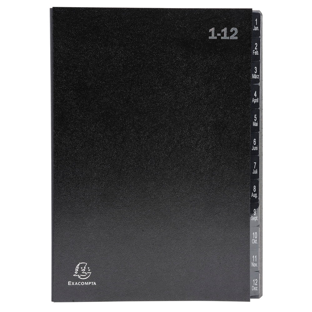 Exacompta Pultordner Ordnungsmappe mit 12 Fächern aus Recycling-Karton, numerisches Register 1-12, für DIN A4