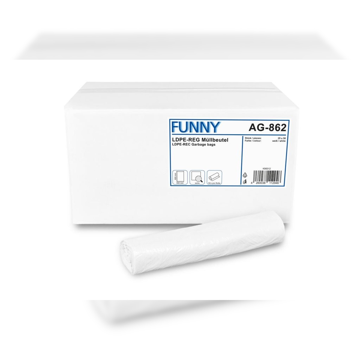 Plock GmbH Müllbeutel Funny - 1250 Abfallbeutel – extra - weiß - ca. 30 L - Müllsäcke