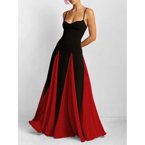 Per donna Abito maxi Abito a trapezio Abito Sottoveste Elegante Festa cocktail All'aperto Feste Ospite di nozze Patchwork Taglia piccola Blocco di colori Senza Maniche Spallina Nero Giallo Rosso