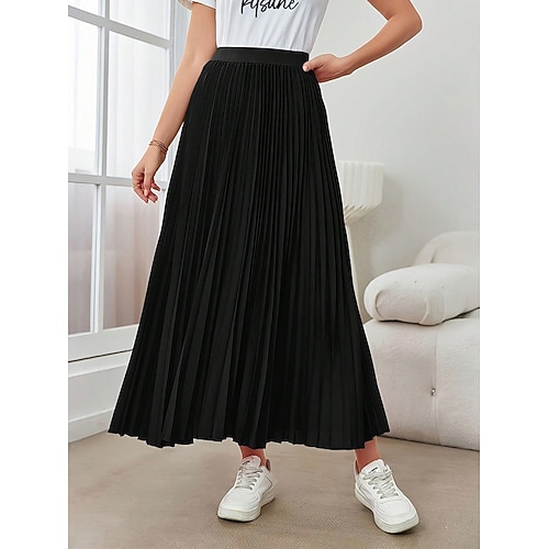 Per donna Gonna da vacanza Elegante Moda Casual Maxi Vita Alta Gonne Semplice Pieghettato Micro-elastico Quotidiano Streetwear Nero Estate Poliestere
