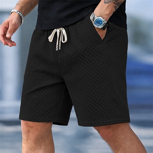 Per uomo Shorts Pantaloncini casual Jacquard Testurizzato Semplice Comodità Traspirante Lunghezza al ginocchio Casuale All'aperto Spiaggia Vacanza Moda Nero Bianco Micro-elastico