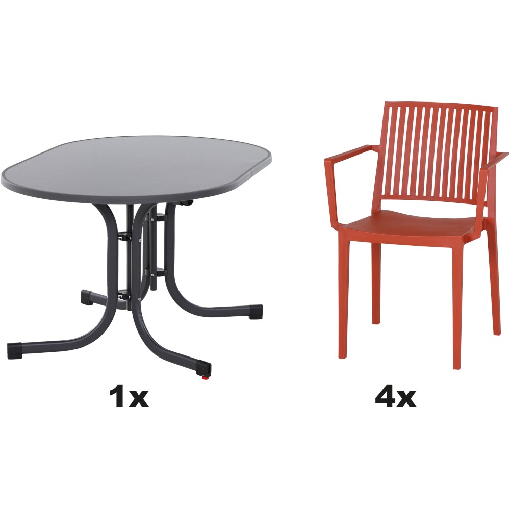 SIENA GARDEN Urban Lights Set 5teilig Lane Sessel gastrotauglich brick mit Tisch Sola 80x80