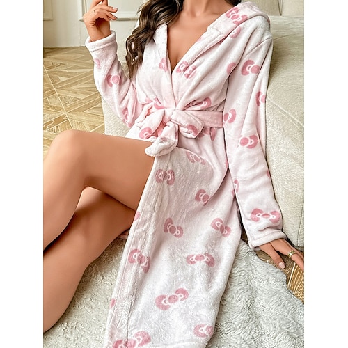 Per donna Accappatoio Casual Comfort Cuore Leopardo Allacciato Casa Quotidiano Manica Lunga Scollo a V Blu Bianco Rosa Marrone Grigio Primavera Autunno Inverno Vestibilità regolare
