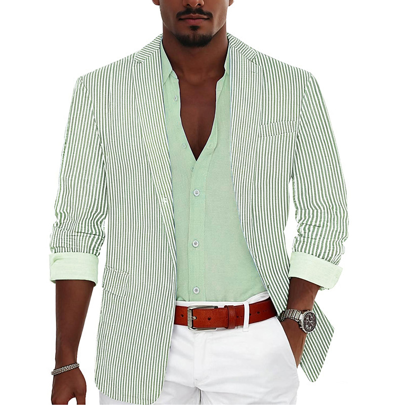 Men's Blazer Jacket Sport Coat Notch Collar Fashion Lightweight Striped Blazer Sky Blue Sage Standard Fit Single Breasted One-button