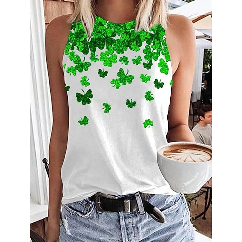 T-shirt grafica da donna per il Giorno di San Patrizio bandiera vintage tropicale elegante senza maniche collo rotondo top regolari stampa quotidiana nera bianca estate primavera