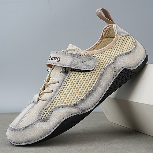 scarpe da ginnastica slip-on da uomo in mesh color cuoio con cinturino in velcro: calzature comode e facili da indossare per attività all'aperto e uscite informali