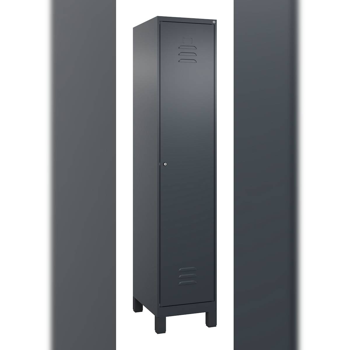 C+P Spind Classic PLUS, Füßen, 1 Abteil, HxBxT 195x40x50cm, Zylinderschloss, Anthrazit von PROREGAL