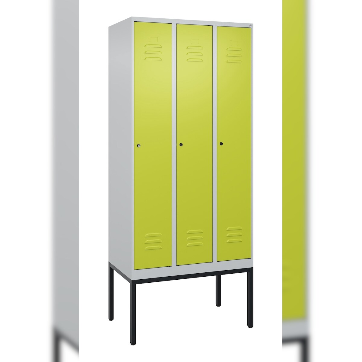 C+P Spind Classic PLUS, Gestell, 3 Abteile, HxBxT 212x90x50cm, Zylinderschloss, Hellgrau/Clowngrün von PROREGAL