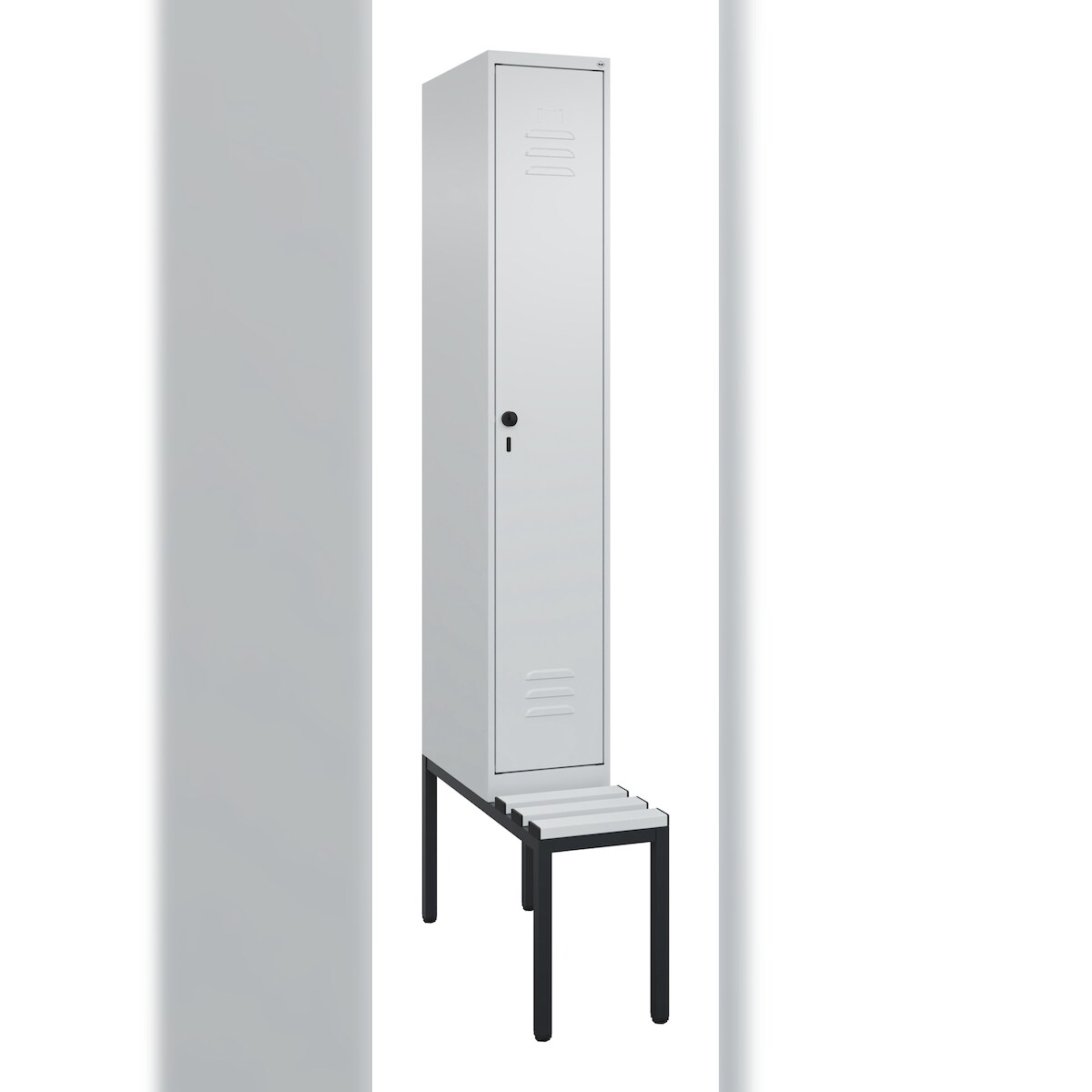 C+P Spind Classic PLUS, Kunststoff untergebaute Sitzbank, 1 Abteil, HxBxT 212x30x82cm, Sicherheitsdrehriegel, Hellgrau/Hellgrau von PROREGAL