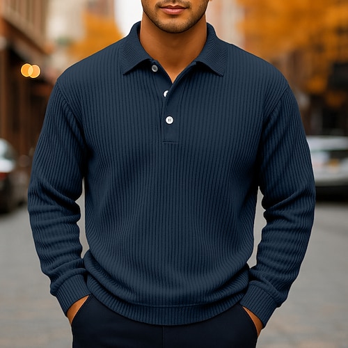 Per uomo Polo Camicia di Velluto a Coste Casuale Sportivo Bavero Manica Lunga Moda Essenziale Tinta unica Testurizzato Bottoni Caldo Autunno Primavera Autunno Vestibilità regolare Blu Blu scuro
