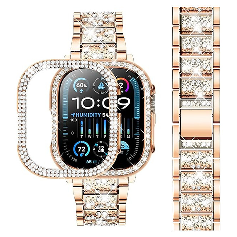 Sportarmband Moderne Schnalle Schmuck Armband Kompatibel mit Apple Watch Armband 38mm 40mm 41mm 42mm 44mm 45mm 49mm Damen Glitzer Bling-Diamant Edelstahl Ersatzarmband für iwatch Ultra 3 2 Series 11