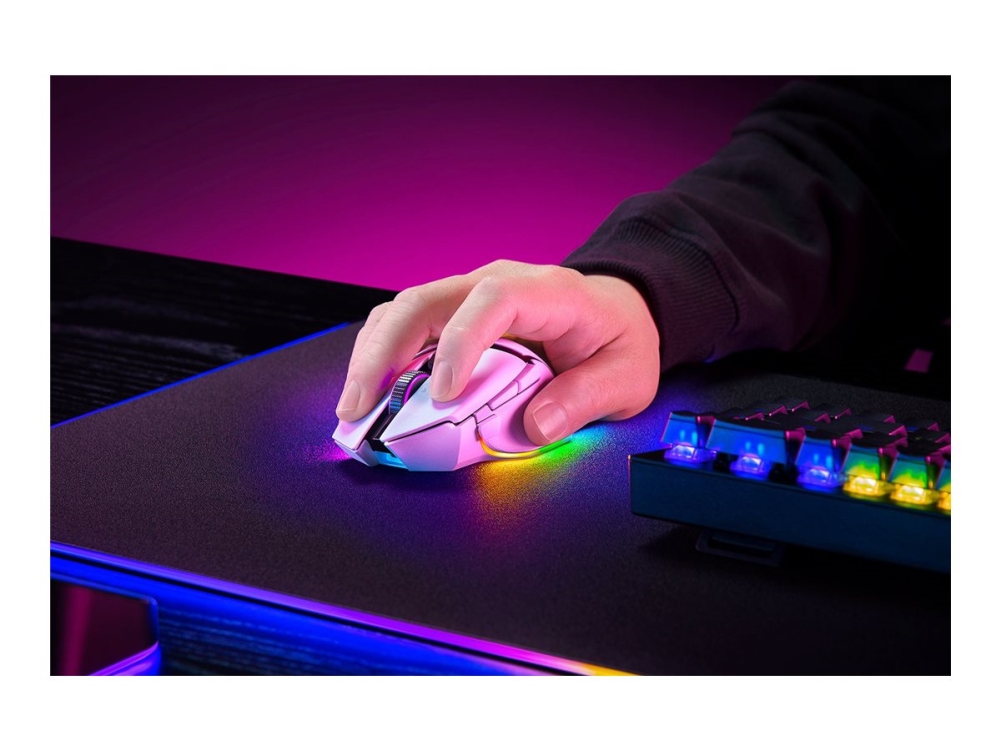 Razer Basilisk V3 pro 35K - Mus - ergonomisk - højrehåndet - optisk - 11 knapper - trådløs, kablet - Bluetooth, USB-C, 2.4 GHz - trådløs modtager (USB) - hvid
