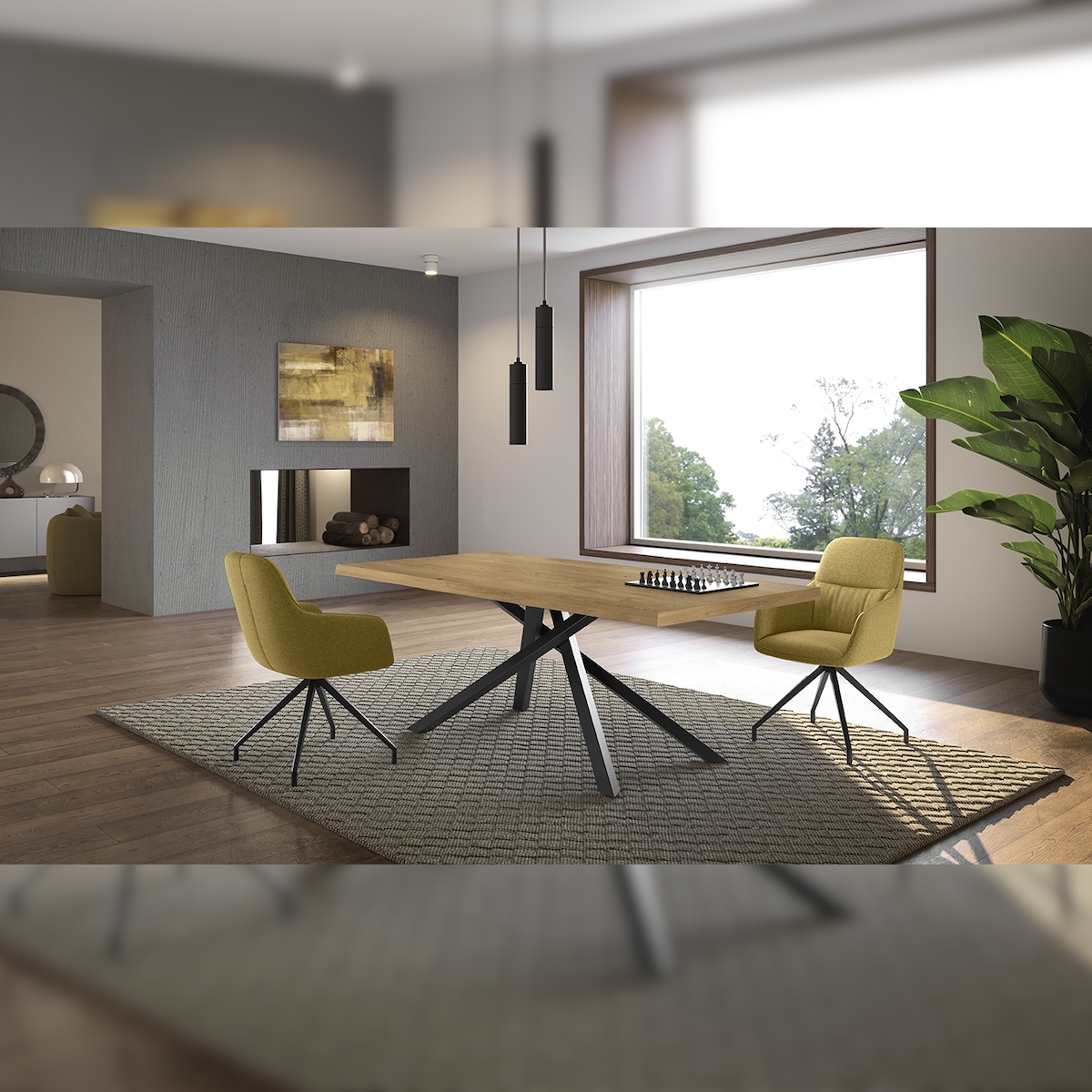 Stones Spike - Fester Tisch (200 x 76 H cm) aus schwarzem Eichenfurnier