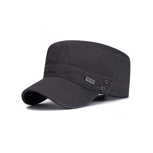 berretto militare da uomo in cotone con cinturino regolabile, cappello militare casual con parte superiore piatta per sport all'aria aperta, viaggi e uso quotidiano