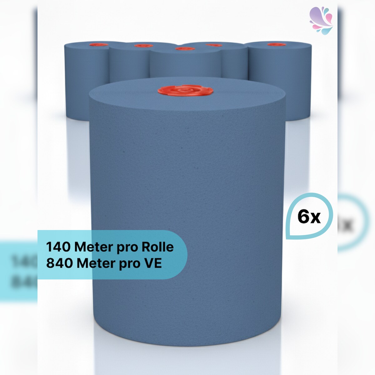Blanc HYGIENIC Handtuchrollen "Classico BLAU" 6 Rollen je SET, 2-lagig, 145m je Rolle, 100% Zellstoff, für Blanc Cosmos Handtuchspender