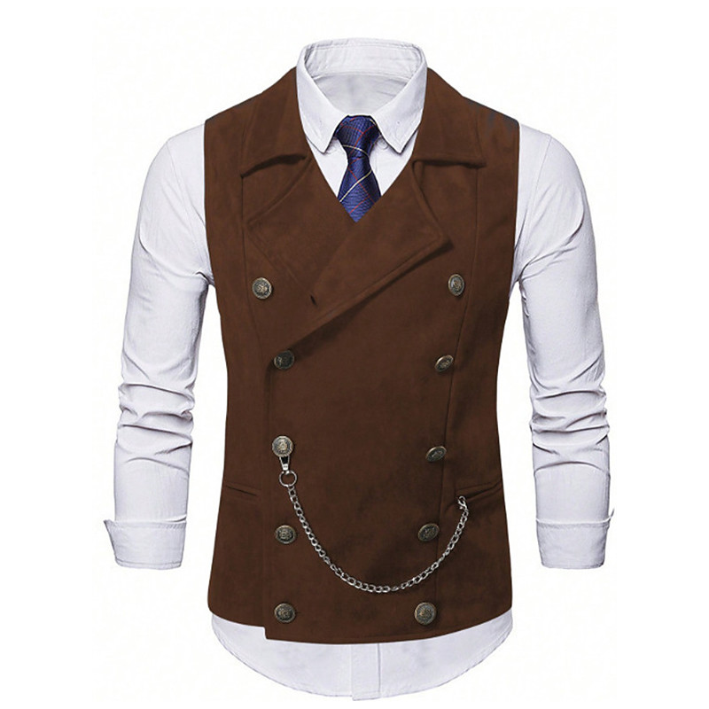 Men's Faux Suede Vest Vest Waistcoat Gilet Vacation Party Business Fashion Casual Spring Fall Pocket Buttons Polyester Comfortable Plain Double Breasted Lapel Regular Fit Black Navy Blue Coffee Vest