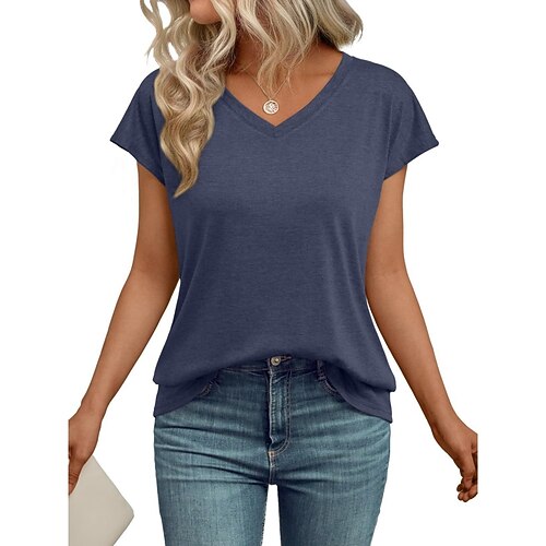 Per donna Maglietta Tinta unica Moda Elegante Classico Manica Corta Scollo a V Top Regolari Quotidiano Uscire Weekend Nero Bianco Vino Blu marino Verde Estate Primavera Autunno