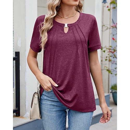 Per donna maglietta Tinta unica Liscio Moda Informale Manica corta Girocollo Top regolari Giornaliero Stampa Verde salvia Nero Bianco Vino Blu marino Estate Primavera