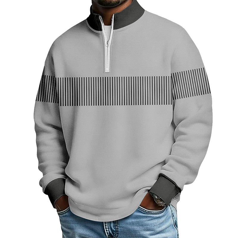 Men's Color Block Zip Polo Shirts Long Sleeve Polo Shirts Grandad Collar Casual School Athleisure Holiday Daily Wear 3D Print Quarter Zip Polo Spring Fall Winter Blue Navy Blue Purple