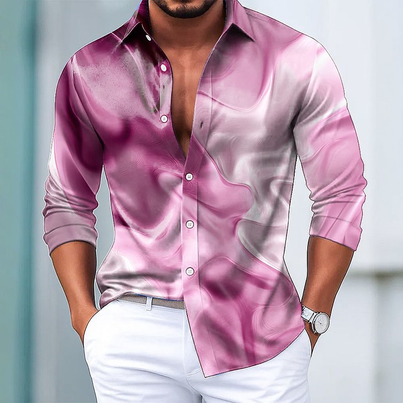 Men's Geometric Gradient Color Abstract Liquid Art Shirt Satin Shirt Dress Shirt Long Sleeve Business Casual Vacation Dailywear Summer Spring Fall Turndown 3D Print Button Up Shirts Blue Pink Purple