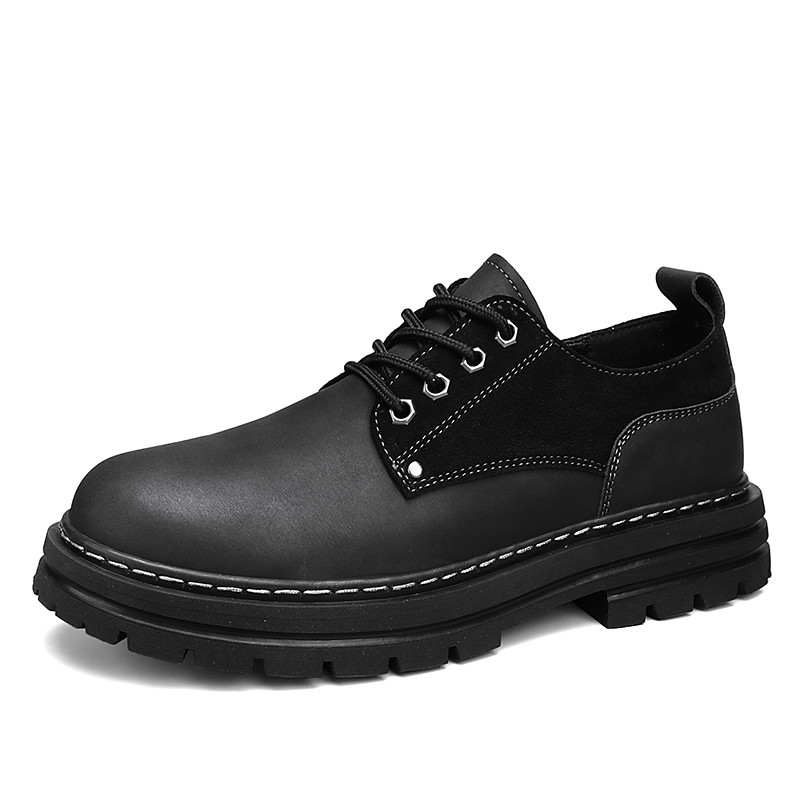 Men's Tan Faux Leather Lace-up Work Shoes with Chunky Sole - Durable and Comfortable Footwear for Work, Travel, and Everyday Use