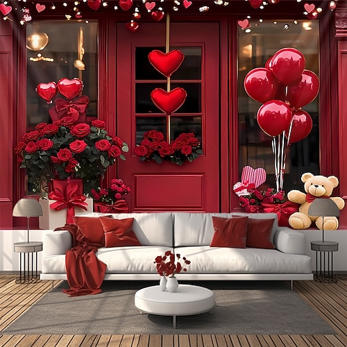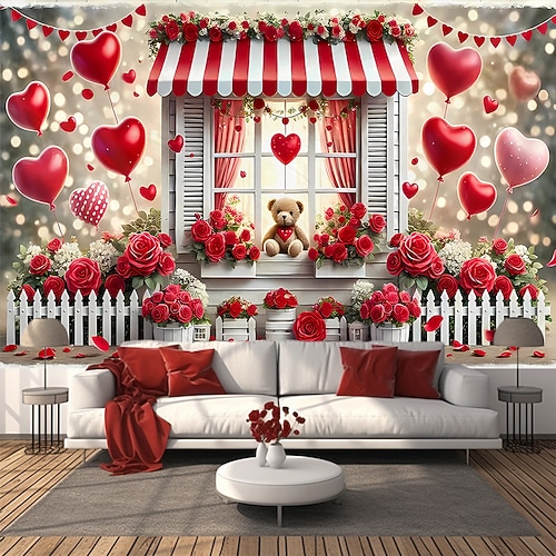 San Valentino arazzo Striscioni Coperta Rose 小熊 Amore Cuori Carino Romantico 3D Da serata Soggiorno Sfondi di ripresa Decorazione per proposta di matrimonio Arredamento per la casa
