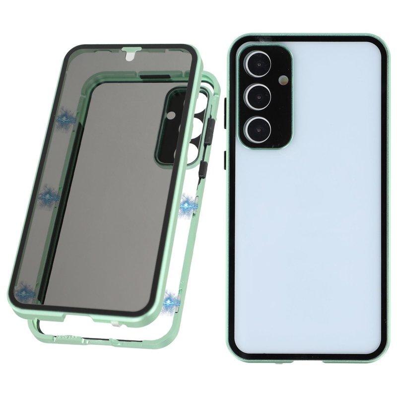 telefono Custodia Per Samsung Galaxy S24 S23 S22 S21 Ultra Plus A34 A54 S20 A32 A52 Custodia ad adsorbimento magnetico Protezione Completa Antipolvere Doppio Lato Trasparente Vetro Temperato Metallo