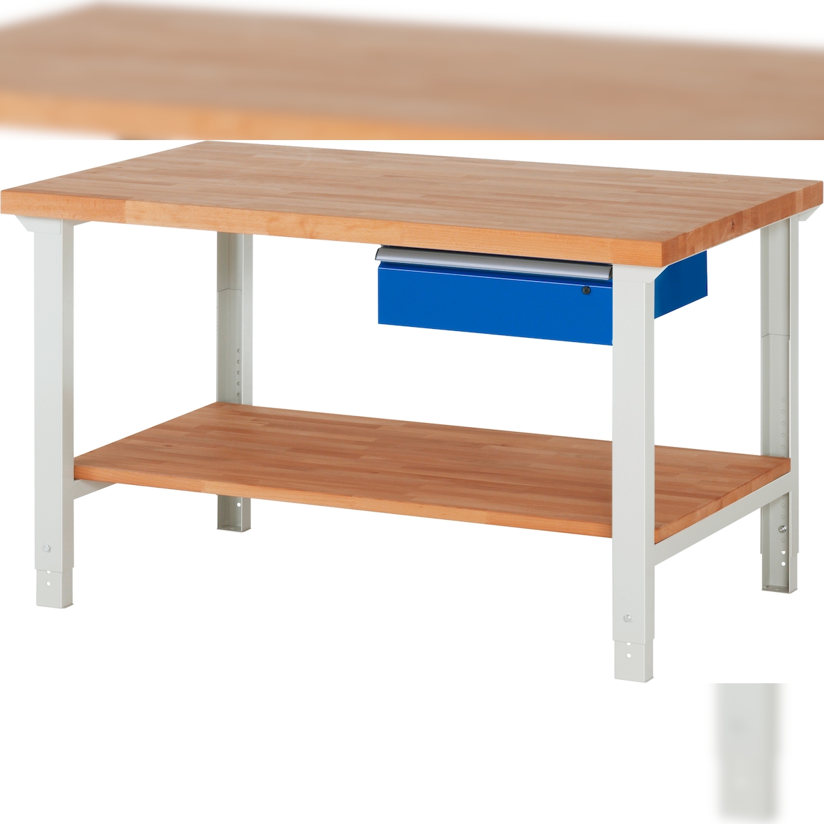 PROREGAL Werkbank Serie 7000 - Modell 7001 | HxBxT 79-114x150x90cm | 1x Schublade + Ablageboden | Schubladenmaße 1x150mm