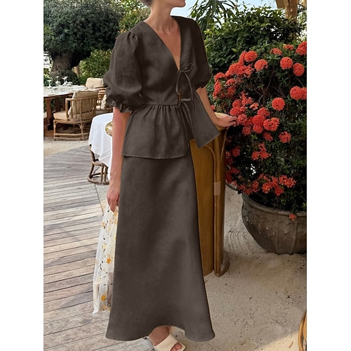 Per donna Set di biancheria in cotone Set da due pezzi Set di gonne Manica Corta Manica a Palloncino Scollo a V Tinta unica Peplo Elegante Moda Streetwear Casuale Quotidiano Lavoro Blu Bianco Giallo