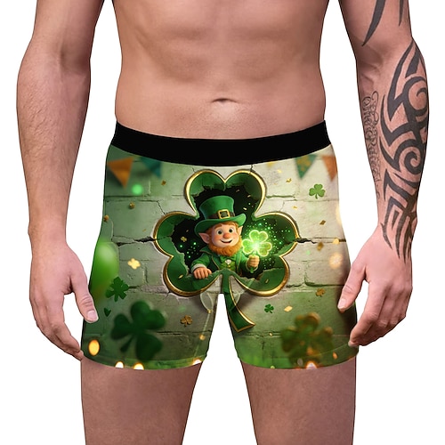 San Patrizio 2026 Leprechaun Trifoglio Irlandese fortunato Carnevale Boxer aderenti Biancheria intima Cosplay Adulti Per uomo Giorno di San Patrizio Casuale Feste Costume di Carnevale facile Vestirsi