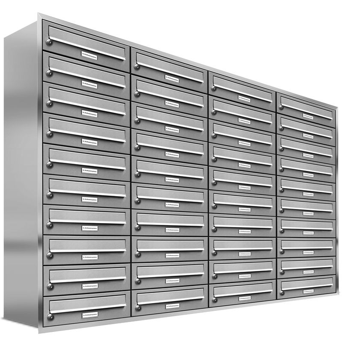 AL Briefkastensysteme 40 Fächer Premium Edelstahl Unterputz Briefkasten Anlage für Post A4, modern, robust, wetterfest, Artikelnummer: 132T40U4