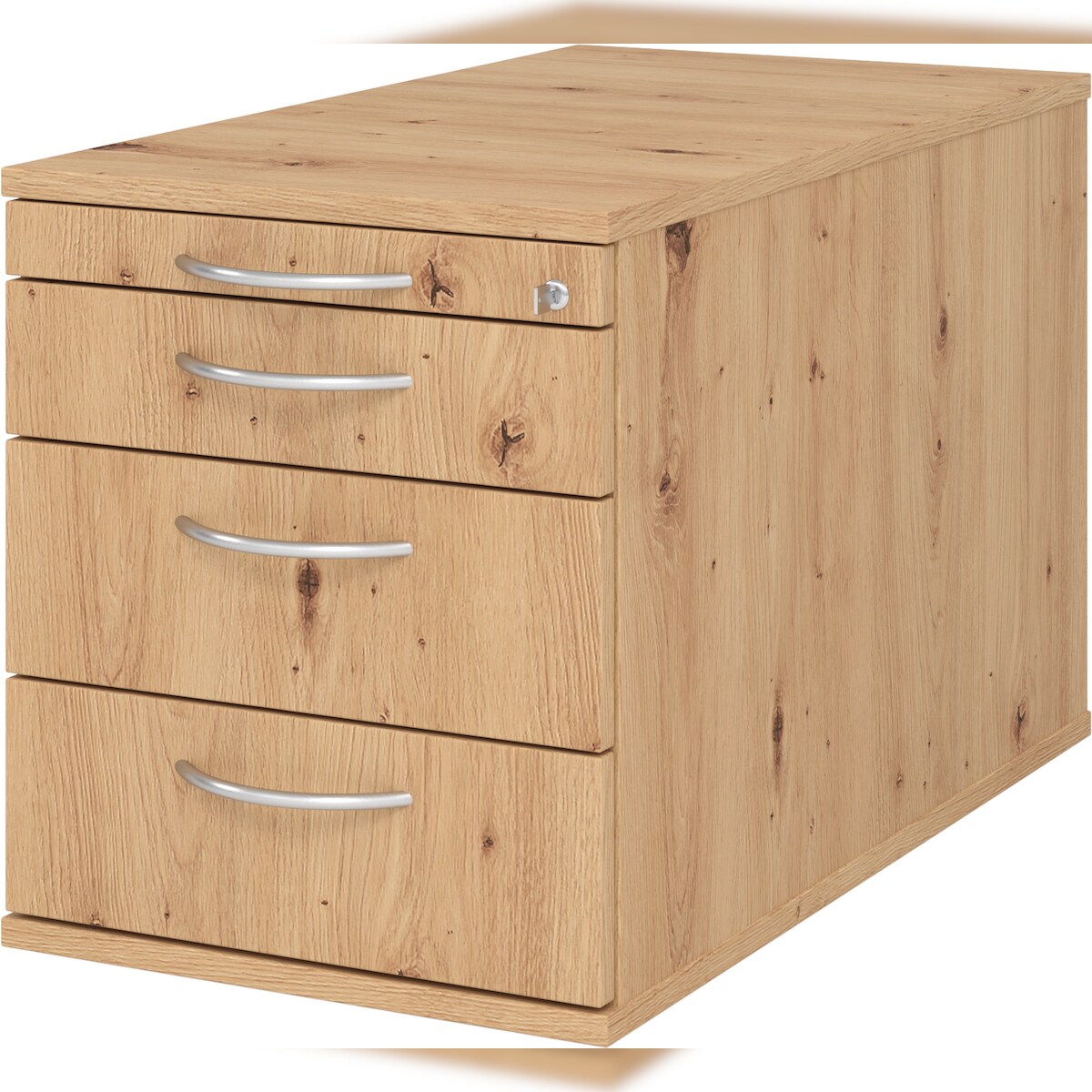 bümö Rollcontainer mit Schubladen, Container abschließbar aus Holz in Asteiche - Rollwagen für's Büro als Schreibtisch Unterschrank, Bürocontainer