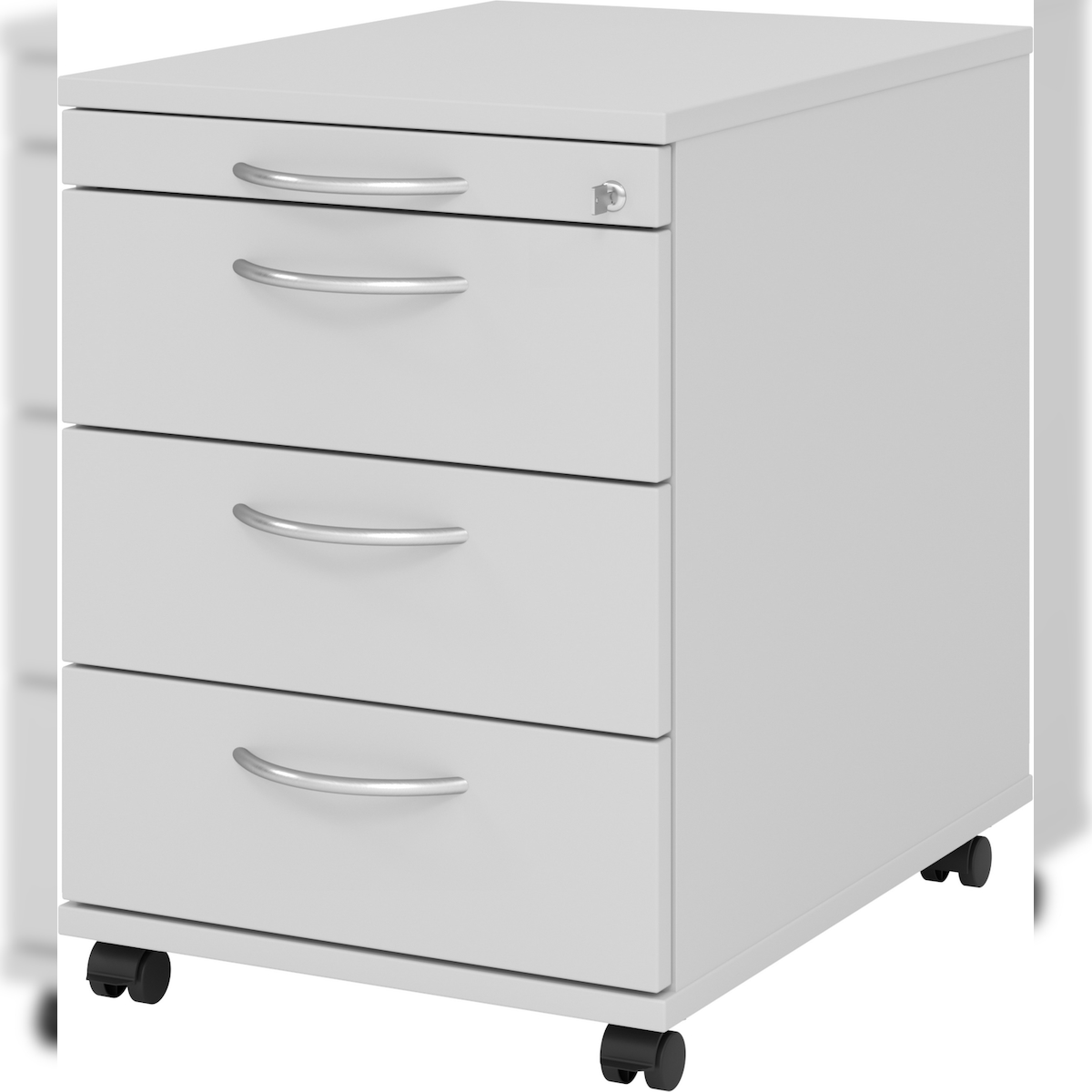 bümö smart Schubladenschrank, Büroschrank in Graphit/Weiß mit 4 Schüben - Bürocontainer aus Holz, Container mit Metallgriffen & Soft-Stop Schubladen