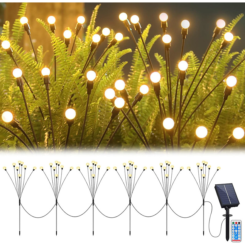 6 In 1 Outdoor Solar Waterproof Firefly Ground Plug in Light 48LED Beams Courtyard Garden Lawn Path Park Atmosphere Decoration Light Landscape Light 8 Function Remote Control