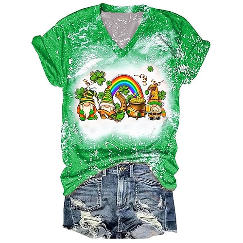 Maglietta da donna di San Patrizio T-Shirt Casual Maniche Corte Collo a V Regolari Tops Stampa Quotidiana Rosa Verde Estate