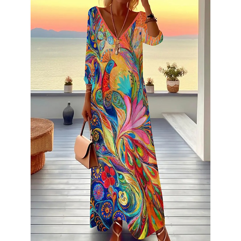 Women's Maxi Dress Sheath Dress Party Casual Boho Daily Date Going out Loose Fit Floral Graphic Paisley Long Sleeve V Neck Black Red Purple Orange Spring Fall Winter