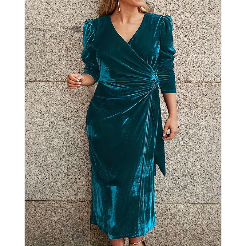 Women's Midi Dress Christmas Dress Velvet Dress Party Dress Cocktail Dress Elegant Fashion Modern Evening Party Party Date Regular Fit Plain Long Sleeve Crew Neck Black Wine Green Dark Blue Fall