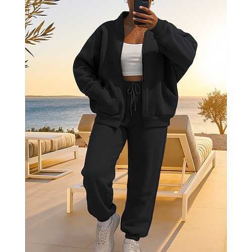 Per donna Tuta da 2 pezzi Set di tute da ginnastica Abbigliamento sportivo Con zip Baggy Tinta unita Completo Abbigliamento Autunno Nero Rosa Lavoro All'aperto Viaggio Leggero Di tendenza Manica Lunga
