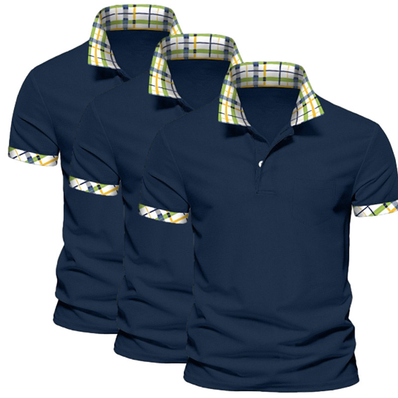 Men's Solid Color Plaid Color Block Polo Shirts Golf Shirt Short Sleeve Lapel Casual Sports Outdoor Business Casual 2 Piece Buttons Multi-pack Summer Spring Spring Fall Dark BlueWhite