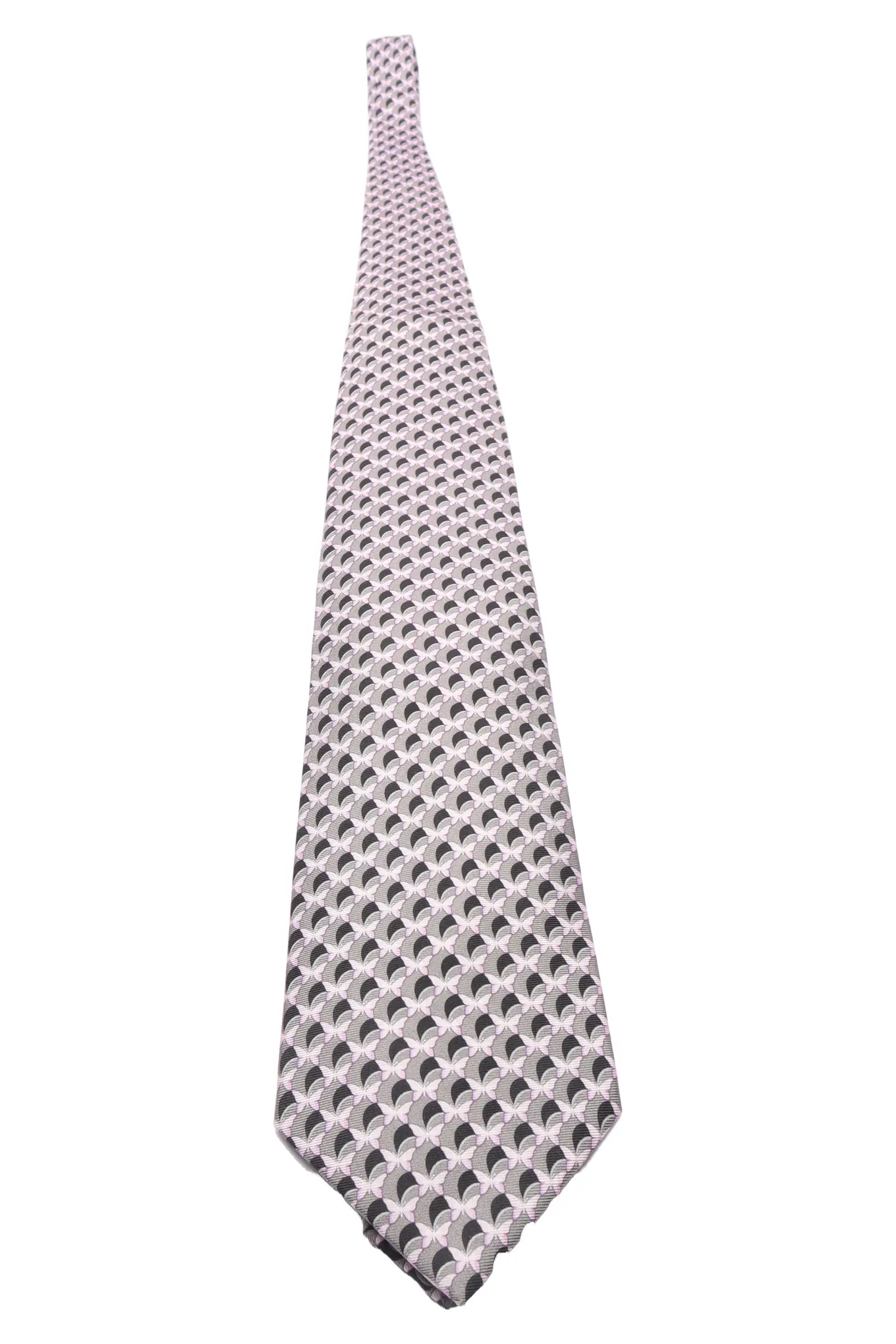 LANVIN Krawatte Herren Seide 150 cm Grau Rosa Schwarz Geometrisch