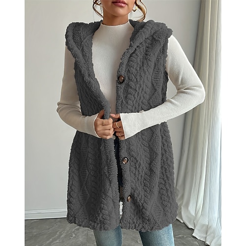 Per donna Cappotto Invernale Gilet in pile Gilet Caldo Confortevole Bottoni Moda Casual Tinta unica Vacanza Abbigliamento quotidiano Uscire Weekend Regolare Con Cappuccio Vestibilità regolare Senza