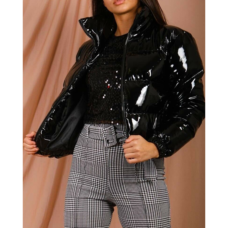 Women's Winter Coat Down Jacket Warm Comfortable Zipper Pocket Casual Solid Color Vacation Street Casual Daily Wear Short Stand Collar Regular Fit Long Sleeve Outerwear Black White Pink Fall Winter