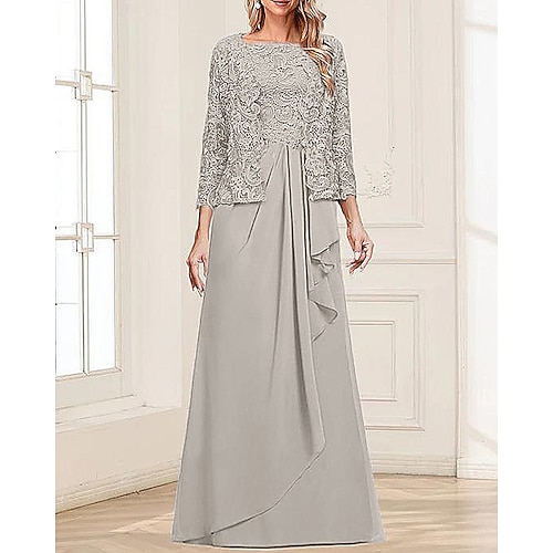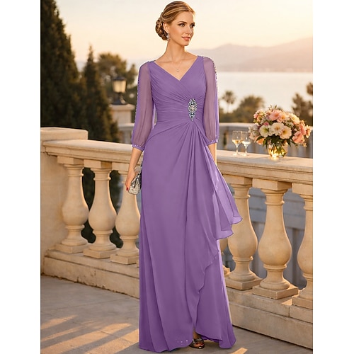 Linea ad A Lunghezza al pavimento Abito da invitata a nozze Abito Formale Abito da sera Abito da cerimonia per signora Manica 3/4 Scollo a V Elegante Ospite di nozze Festa di fidanzamento Chiffon con