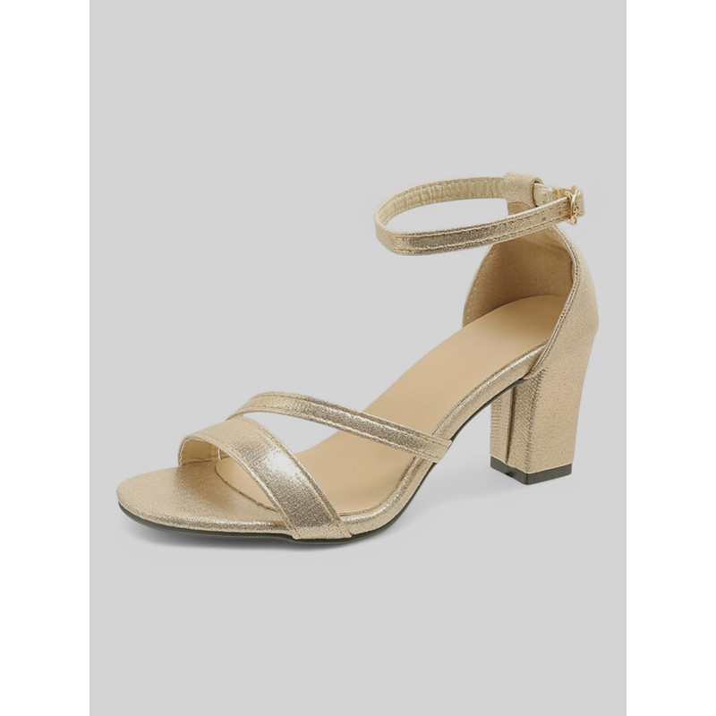 Gold Block Heel Sandals for Women – Shimmering Ankle Strap Open Toe Heels for Formal Parties and Cocktail Events